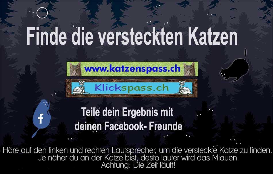 Find die versteckten Katzen und teile dein Ergebnis auf Facebook.